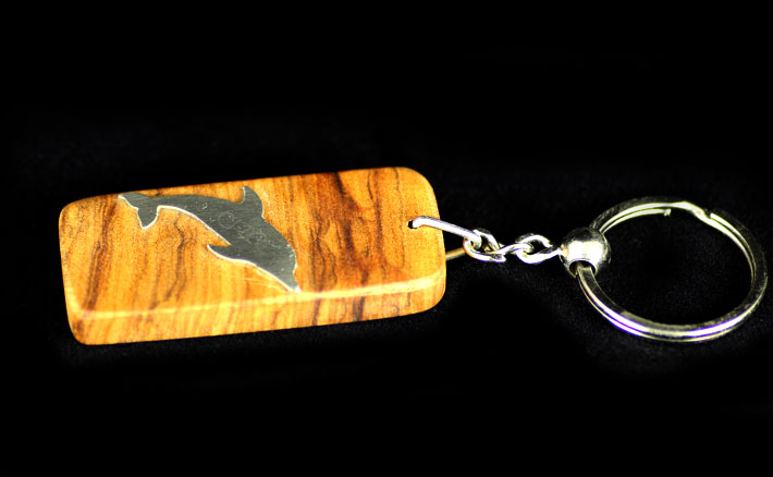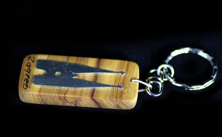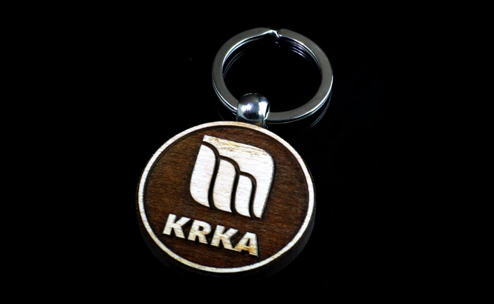 Drveni privjesak od maslinovog drva s ugraviranim logotipom i personaliziranim tekstom na kopči