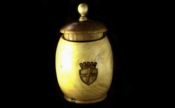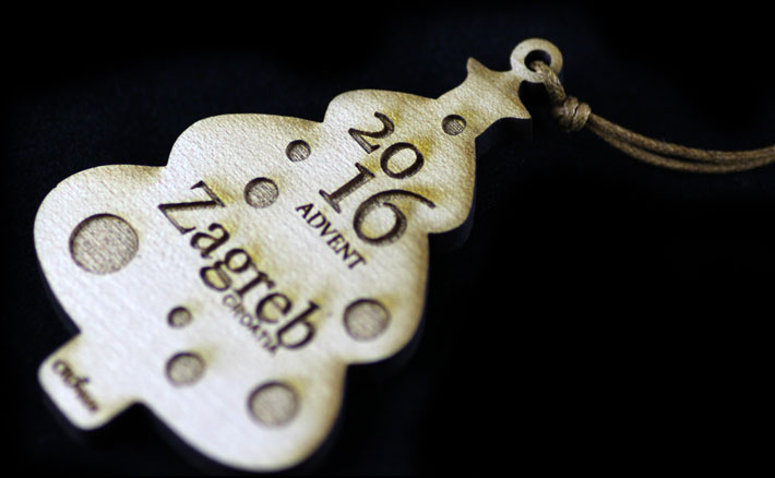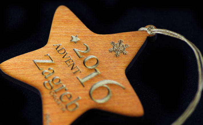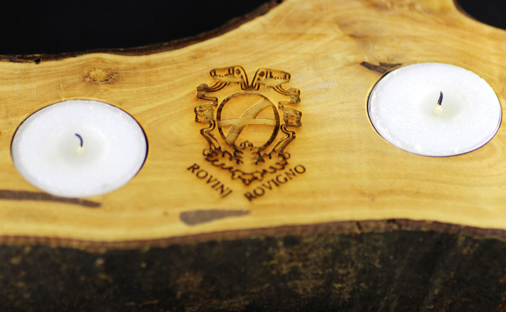 Drveni ukras od maslinovog drva s prorezanim i ugraviranim logotipom i personaliziranim tekstom po želji