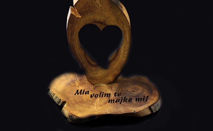 Drveni stalak od maslinovog drva s izrezanim oblikom po želji i ugraviranom porukom