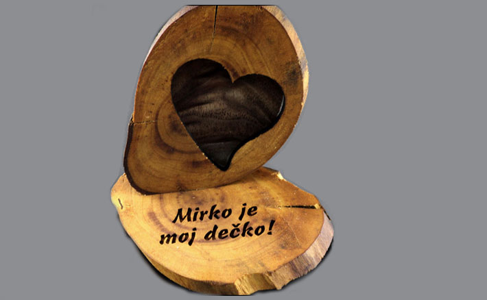 Kutija je izrađena od drva koja s ogrlicom čini jedinstvenu cjelinu. Natpisi na ogrlici i kutiju mogu biti jednaki ili povezani. Cilj je voljenoj osobi sa svakim segmentom dati posebnu pažnju.