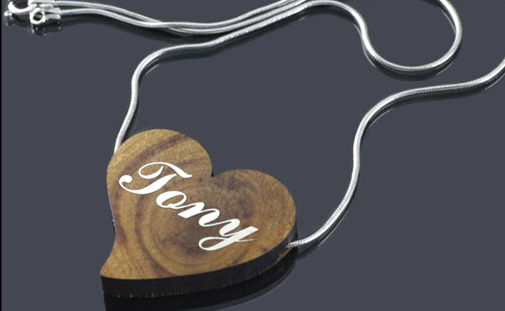 Drveni privjesak od maslinovog drva s ugrađenim imenom, ručno izrađenim od srebra 925 na lančićima različitih debljina i dužina