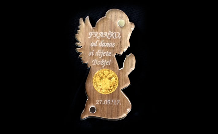 Drvena kutija izrađena je u obliku anđela na kojoj može biti ugravirana molitva ili posebna poruka